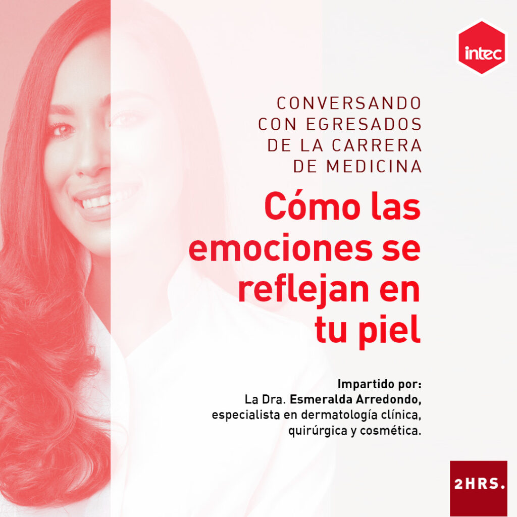En la sección “Conversando con egresados de la escuela de medicina” este mes contaremos con la presencia de la Dra. Esmeralda Arredondo especialista en dermatología clínica, quirúrgica y cosmética tratando el tema: Cómo las emociones se reflejan en tu piel.