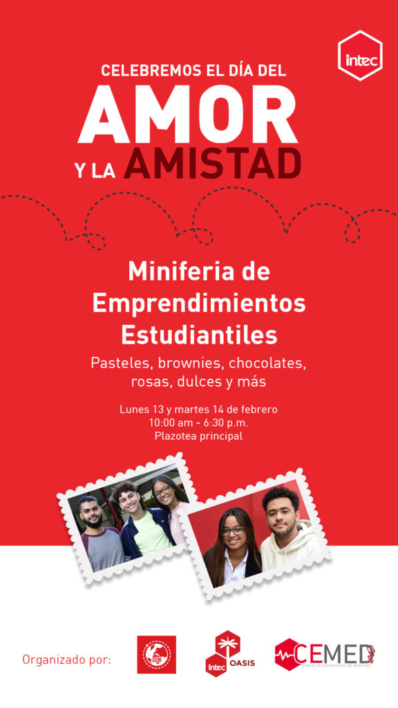 Los Comités Estudiantiles de Negocios Internacionales (CENI) y Medicina (CEMED) con el apoyo de la Dirección de Servicios a Estudiantes (DSE) y la Unidad de Vida Universitaria los invitan a la Miniferia de Emprendimientos Estudiantiles, donde los estudiantes del INTEC estarán comercializando accesorios de mujer, artículos para celulares y una gran variedad de postres. Los días […]