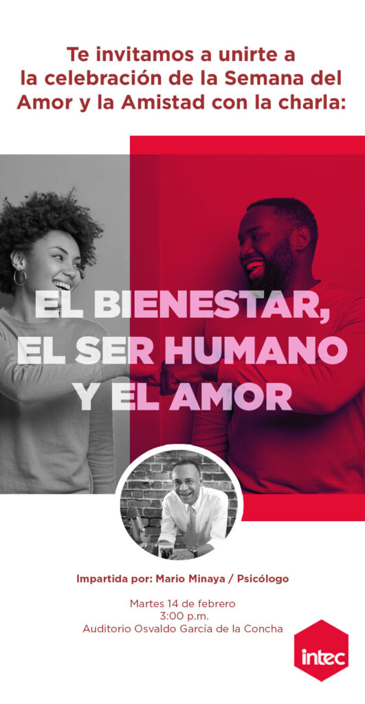 Te invitamos a unirte a la celebración de la Semana del Amor y la Amistad con la charla:El Bienestar, el Ser Humano y el Amor impartida por el Psicólogo Mario Minaya.