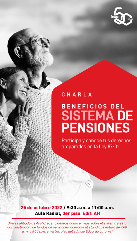 Conoce más de los beneficios del Sistema de Pensiones de la Rep. Dom. y tus derechos amparados en la ley 87-01. Virtual 9:30 a.m. a 11:00 a.m. TEAMS https://forms.office.com/r/UEeBkPbxhg https://forms.office.com/r/UEeBkPbxhg Presencial: 3:00 p.m. a 4:30 p.m. Aula Radial (309), edificio Ana Mercedes Henríquez (AH). CHARLA: Beneficios del Sistema de Pensiones Boletos, Mar, 17/01/2023 a las […]