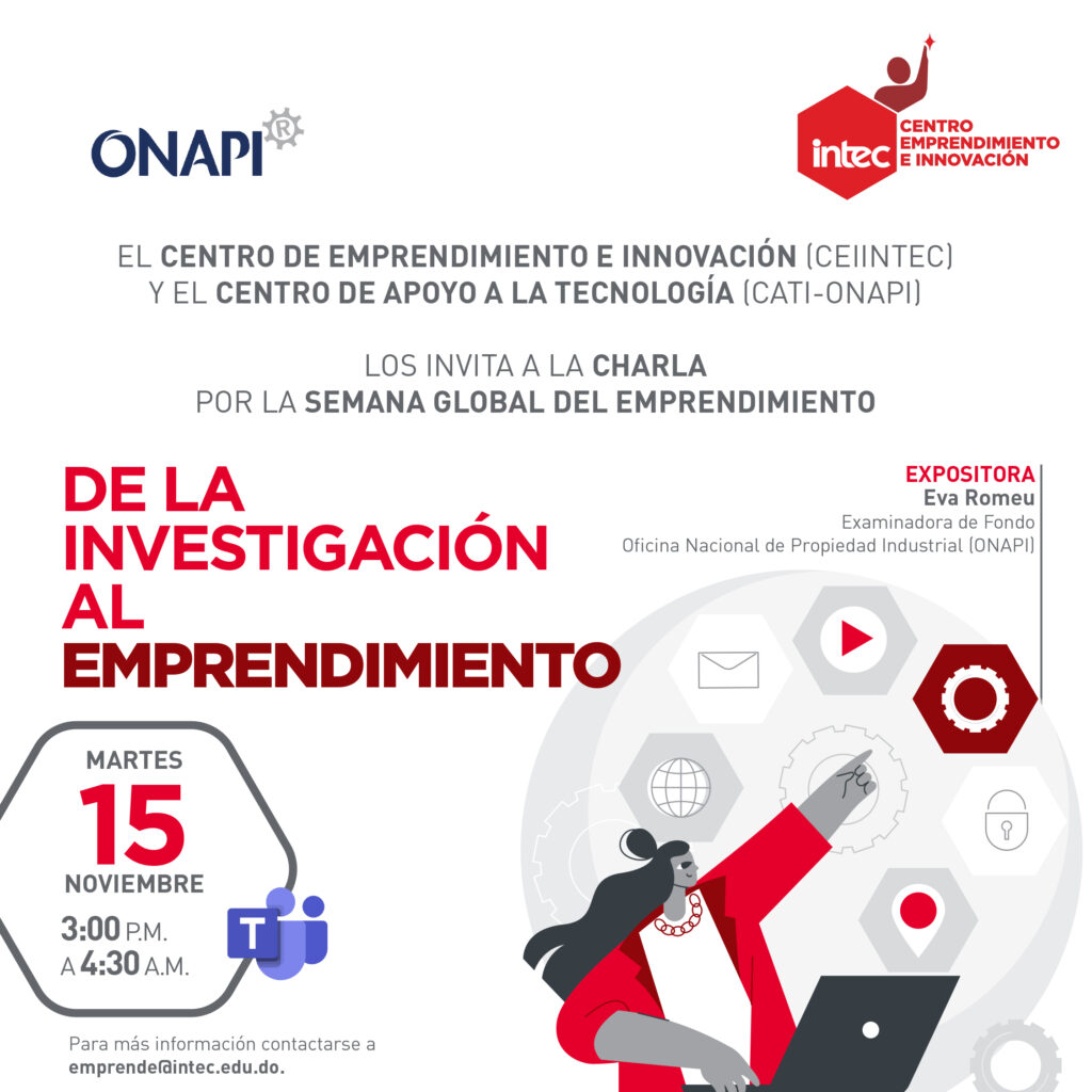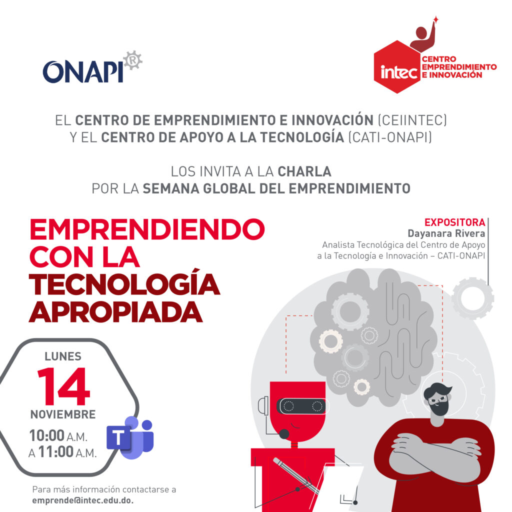 El Centro de Emprendimiento e Innovación (CEIINTEC) y la Oficina Nacional de Propiedad Industrial (ONAPI), los Invita a la Charla: "De la Investigación al Emprendimiento". Que desarrollará temáticas dirigidas a toda la comunidad inteciana y público en general, que desee ampliar sus conocimientos para el desarrollo de emprendimientos partir de la investigación, mediante estudios de […]