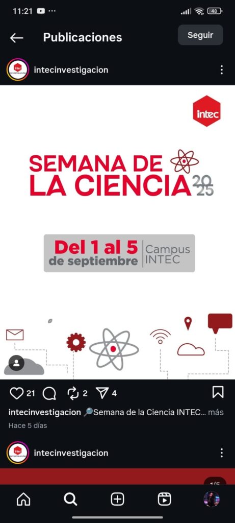 La Semana de la Ciencia 2025 aspira a ser un puente que una la investigación, la innovación y la sociedad. A través de una serie de eventos inmersivos y colaborativos, pondremos de relieve el impacto transformador del conocimiento generado en INTEC, acercando la ciencia a todos y todas.