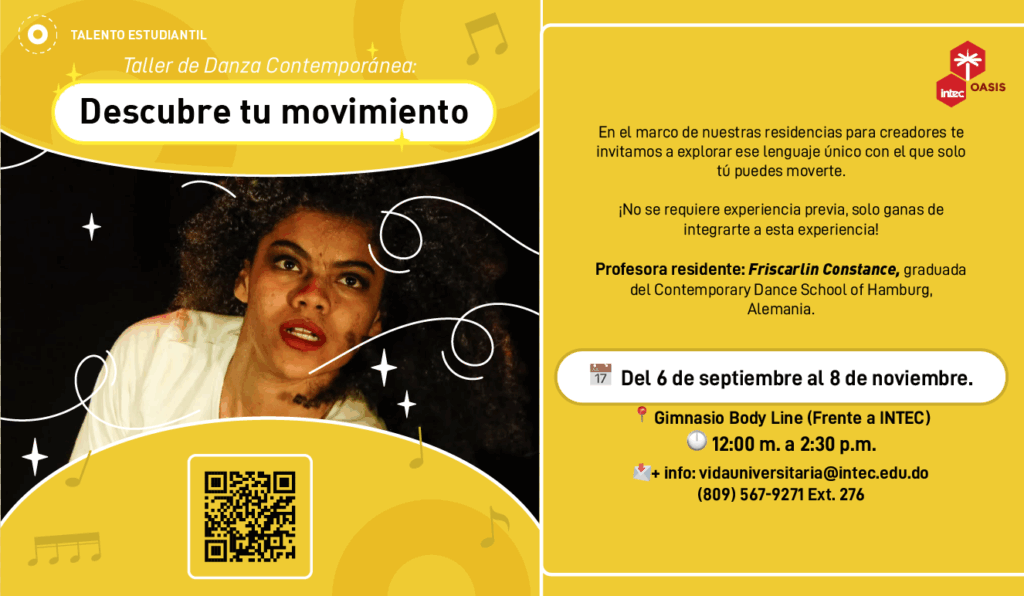 ✨ ¡DANZA INTEC es para todos y todas! ✨ TALLER: DESCUBRE TÚ MOVIMIENTO. En el marco de las residencias para creadores y profesores de DANZA INTEC, te invitamos a explorar el lenguaje único de tú ser y a descubrir la forma tan especial con la que solo tú puedes moverte. 👉 ¡No se requiere experiencia […]