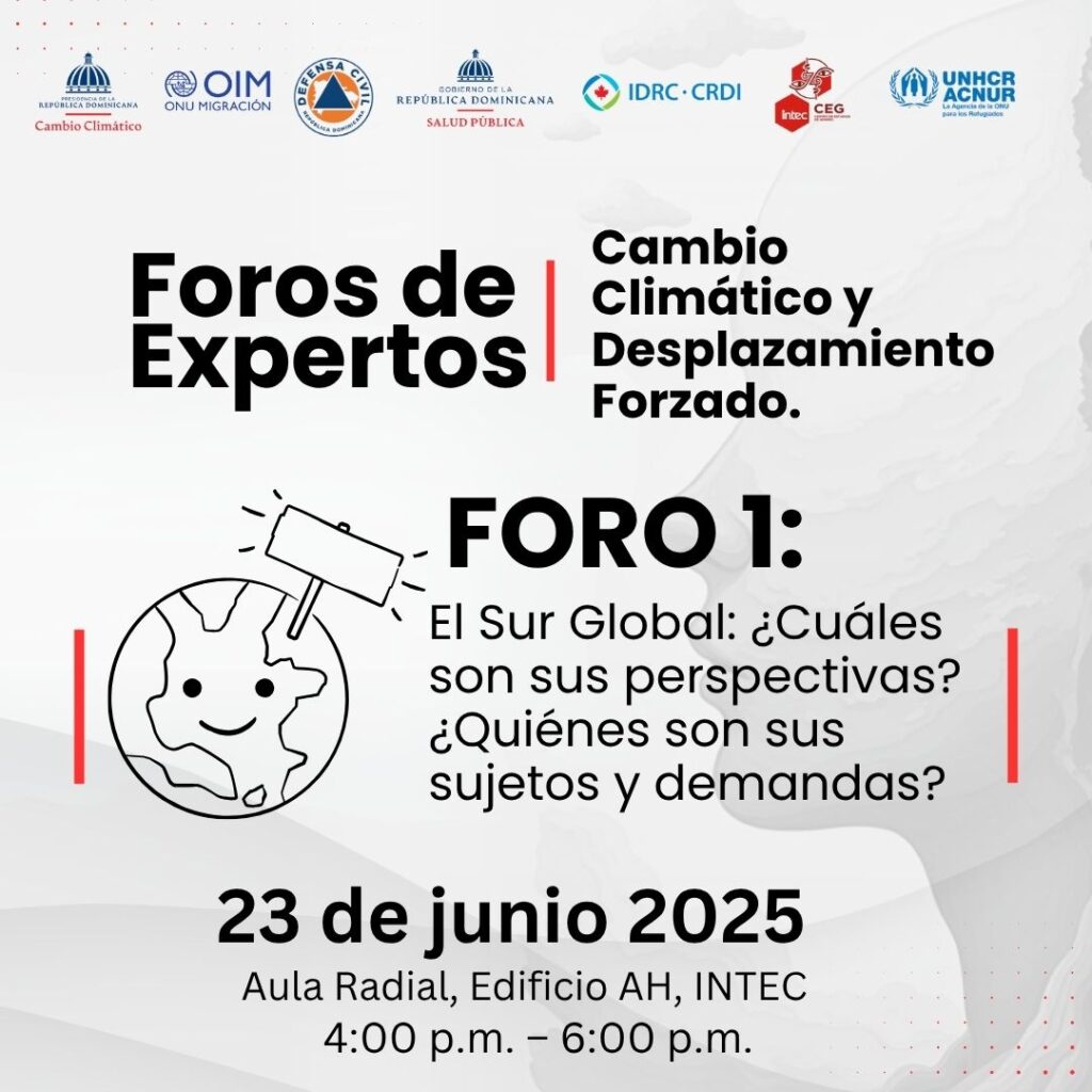El Centro de Estudios de Género del Instituto Tecnológico de Santo Domingo (INTEC) tiene el honor de invitarle a participar en el ciclo de Foros de Expertos que se desarrollarán en el marco del proyecto “Cambio climático y desplazamiento forzado: su impacto en la vida de mujeres y niñas”. Estos espacios de diálogo buscan profundizar en los múltiples impactos del cambio climático desde una mirada interseccional y territorial, promoviendo la producción de conocimientos desde y para el Sur Global.