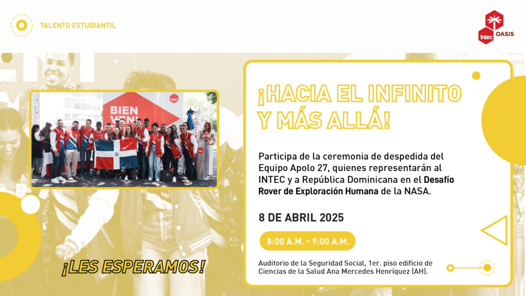 Ceremonia de despedida del Equipo Apolo 27 quienes van a representar a INTEC – República Dominicana en Competencia de la NASA. Momento central: Entrega de Banderas