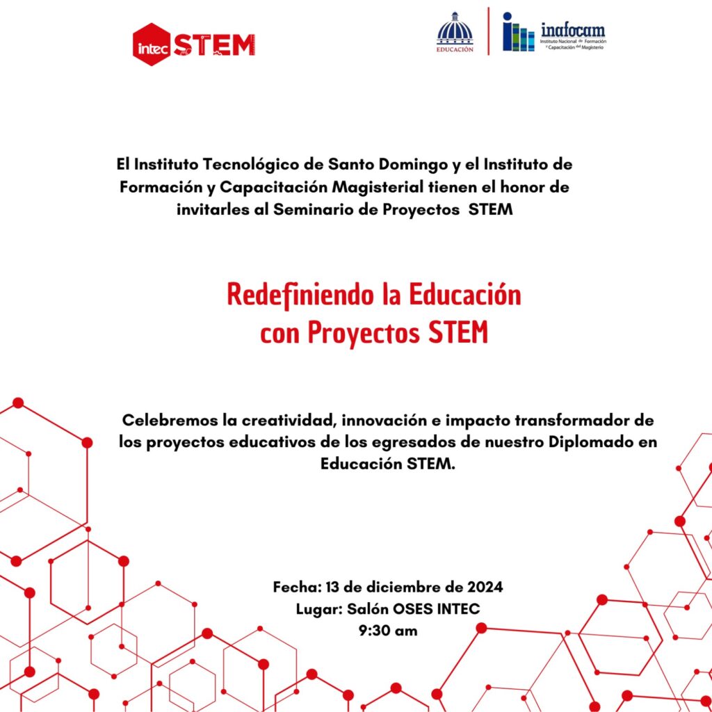 Cierre del Diplomado STEM-INTEC-INAFOCAM, donde celebraremos la creatividad, innovación e impacto transformador de los proyectos educativos de los egresados de nuestro Diplomado en Educación STEM.