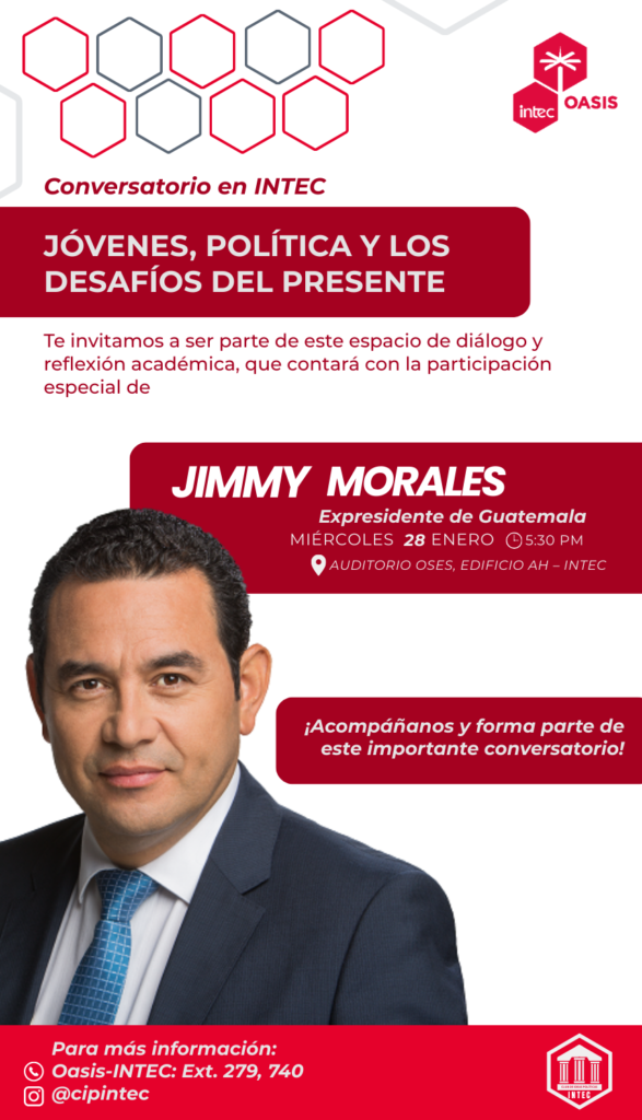 “Conversatorio con el Expresidente Jimmy Morales: Jóvenes, Política y los Desafíos del Presente” 📅 Fecha: Miércoles 28 de enero de 2026🕕 Hora: 6:00 PM