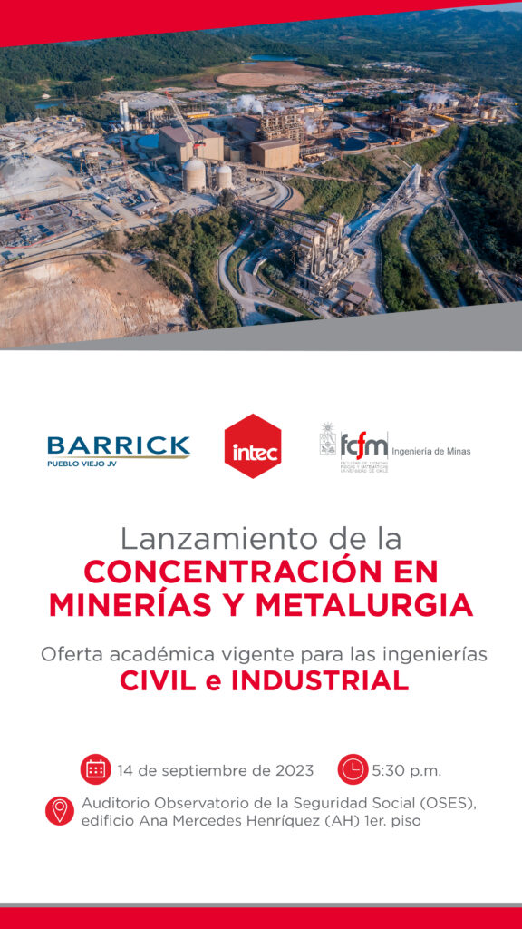 Lanzamiento oficial de la Concentracion de Minerías y Metalurgia junto a la Empresa Barrick gold Pueblo Viejo y en alianza con la Universidad de Chile. Los principales participantes serán: El rector, Pta. Barrick gold, Representante de la Universidad de Chile.